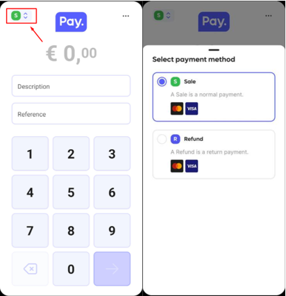 Druk linksboven in de Pay.Pos app op het groene icoon met de “S”
